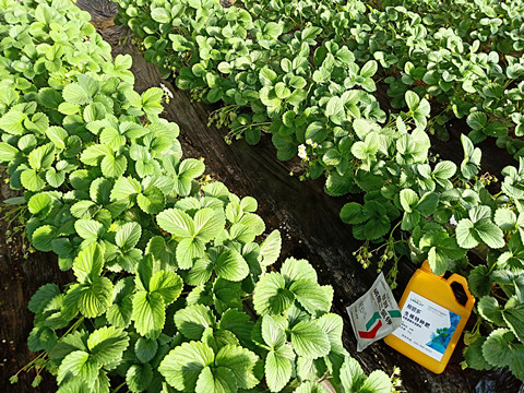 花期果實成熟期:主要抑制灰霉病、白粉病;蜜蜂輔助授粉,減少畸形果產(chǎn)生;做好防凍措施,尤其是靠近棚門的位置, 以免凍害影響。這個時期32.5%苯甲嘧菌酯懸浮劑1500-2000倍, 7~15天1次2、5%阿維菌素乳油2000倍,葉面噴施, 防治蚜蟲、紅蜘蛛等。用藥時,將蜜蜂箱移出大棚或移到未施藥棚室內(nèi)。這個時期主要是使用膨果肥,采果肥,復壯肥,為持續(xù)產(chǎn)出提供能量。